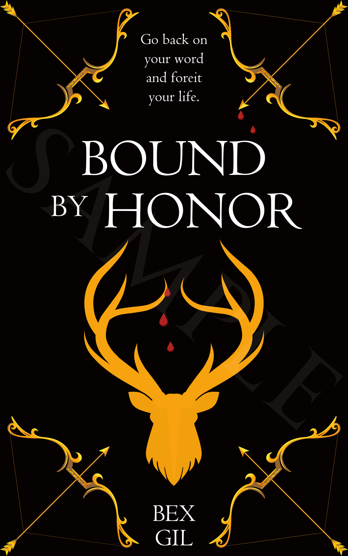 -book title, pen name, series name/tag line